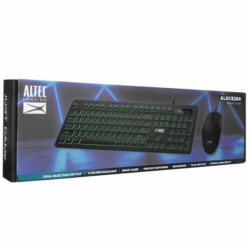 Altec Lansing ALGC8264, Siyah, 3 Renkli, USB Kablolu, Multimedya Fonksiyonlu, Gaming Klavye+Mouse Set