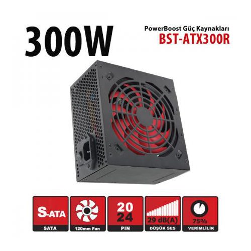 Model:PowerBoost 250w Siyah 12cm KIRMIZI fanlı ATX POWER SUPPLY (Retail Box)