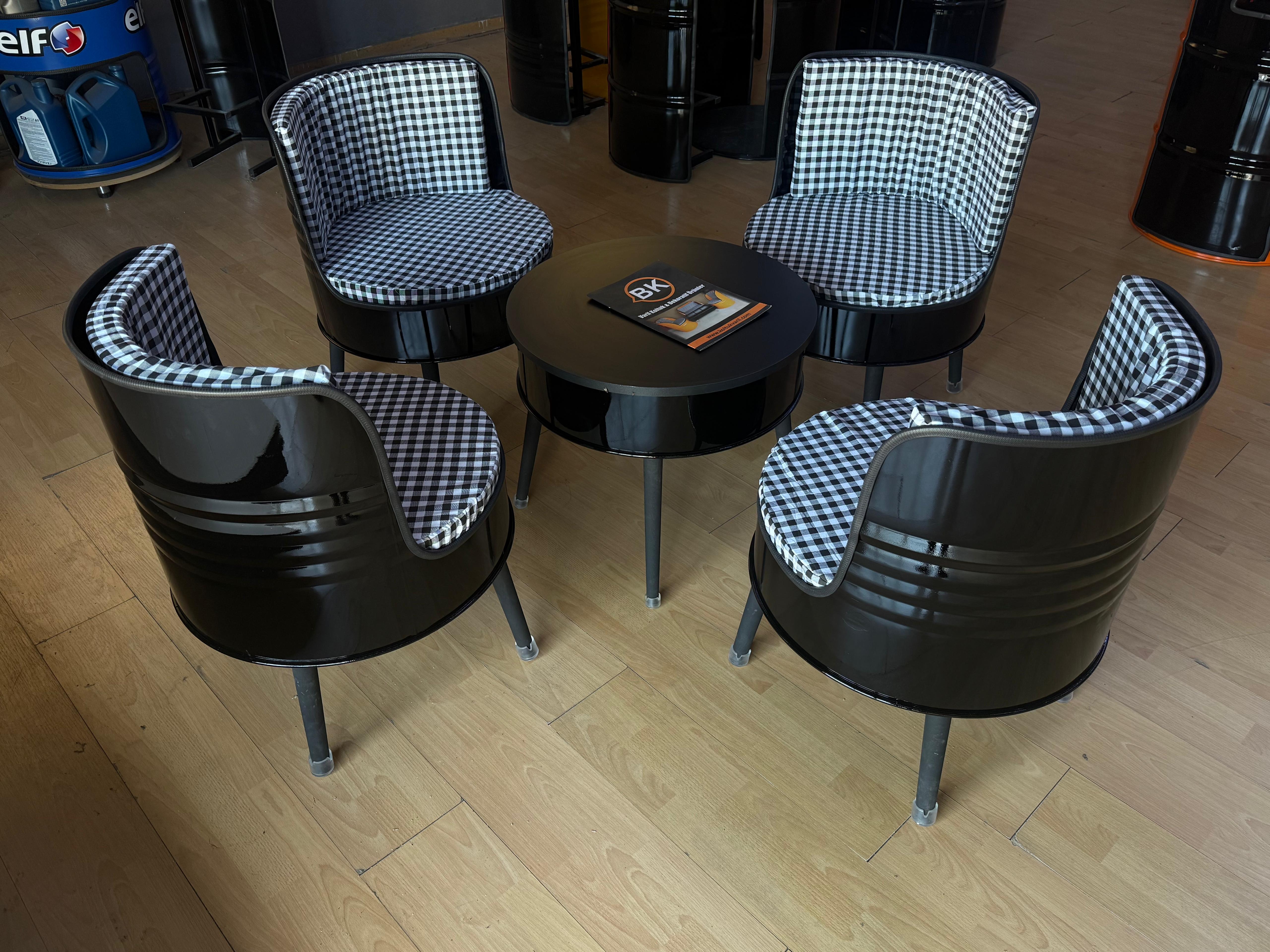 - Varil bella koltuk takımı 4 adet tekli koltuk ve bir adet sehpadan oluşmaktadır.